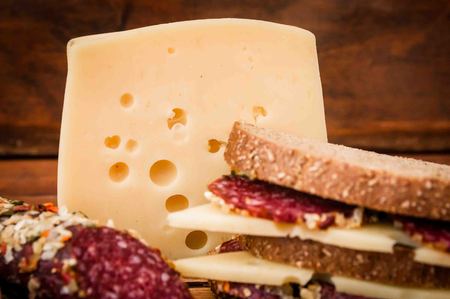 Generative AI Image of Swiss Cheese with Bread on a Table with Neat Decoration