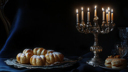 Jewish holiday Hanukkah with menorah (traditional candelabra).
