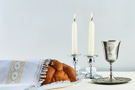 Shabbat Shalom - Traditional Jewish Sabbath ritual challah bread,