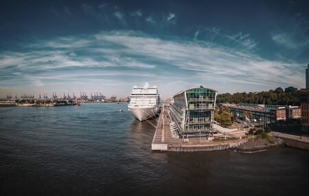 HAMBURG, GERMANY - JULY 24, 2018 : Street view of Cruise ship in the harbor, Hamburg, Germany.