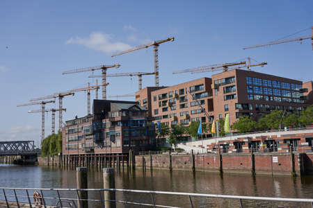 HAMBURG, GERMANY - CIRCA MAY 2017: HafenCity quarter in the district of Hamburg Mitte on the Elbe river island Grasbrook on former Hamburger Hafen (Port of Hamburg)