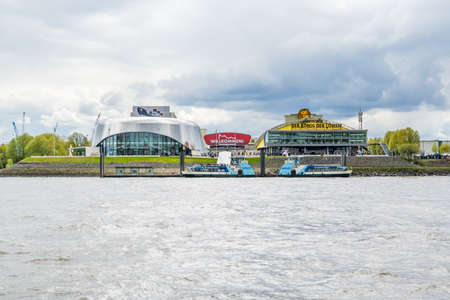 Hamburg. Germany. - May 06, 2016: Beautiful view of the famous harbor and traditional steamer on the Elbe river, St. Pauli district, Hamburg, Germany
