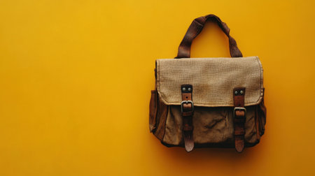 This image features a vintage messenger bag placed on a vibrant yellow background, showcasing its stylish design and practical storage potential for various lifestyles.