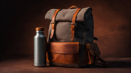Backpack leather strap brown pocket stainless steel bottle travel gear adventure stylish durable classic