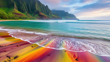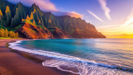 Hawaii beach sunset summer paradise vacation landscape.