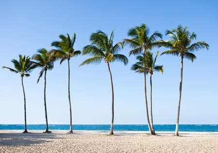 Palms trees on the beach during bright day