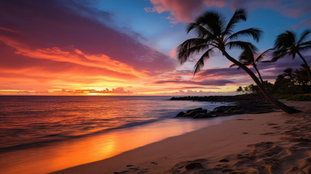 Sunset Serenity on a Hawaiian Beach - Dusk's Embrace, A peaceful sunrise from a Hawaiian beach Ai generated