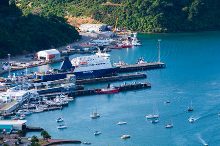 WELLINGTON, NEW ZEALAND, FEBRUARY 8, 2020: Container port in Wellington, New Zealand
