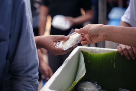 The Hope of the Poor by Donating Charity Food to the Immaculate : Participation in sharing food for the poor : The Concept of Love : The beggar is waiting for food from charity aid