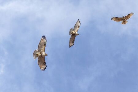 Pair of common buzzard (Buteo buteo) flying in the sky