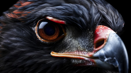 Close-Up Portrait of an Eagle, Intense Gaze, Sharp Beak, and Detailed Feathers on a Black Background