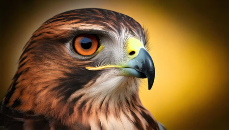 Portrait of a red-shouldered hawk on a yellow background