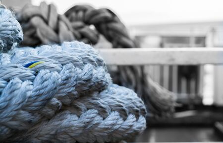 Pile of ship ropes. Ship ropes leying on the pier of a harbour