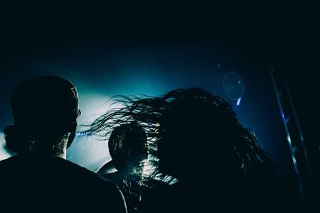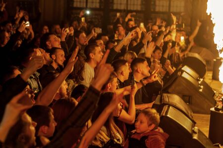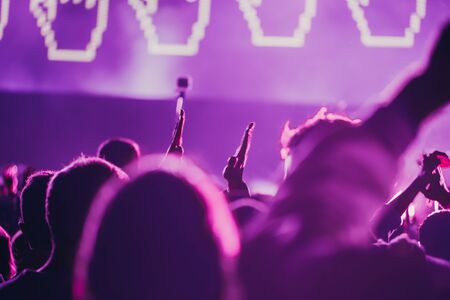 Crowd going crazy at a rock or heavy metal concert. A lot of people at the mass event. Concert crowd, hardcore party fun