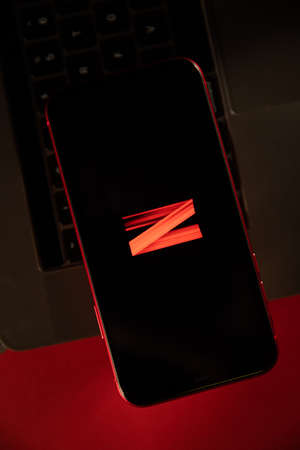 Tula, Russia - March 02, 2021: Netflix logo on iPhone display