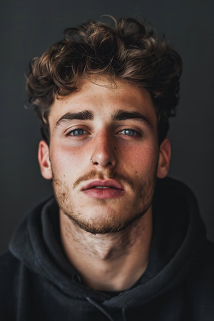 portrait of a man with hands near his face