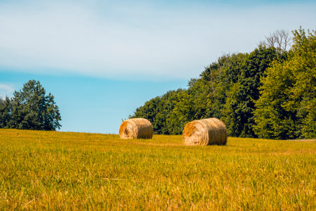 Couple of Hay Bales in the Countryside on a Sunny Summer Day