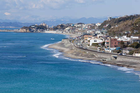 View of Enoshima bay, Enishima Island, Autumn season in Kamakura, Japan
