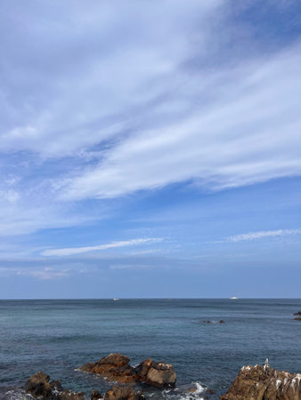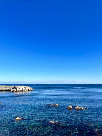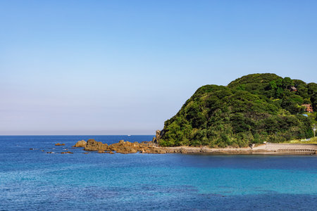 Beautiful blue sky and green and natural scenery of the sea in Kitanagato Coast Quasi-National Park