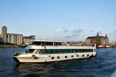 Passenger ship or ferry sailing along the Bosphorus in Istanbul in Turkey