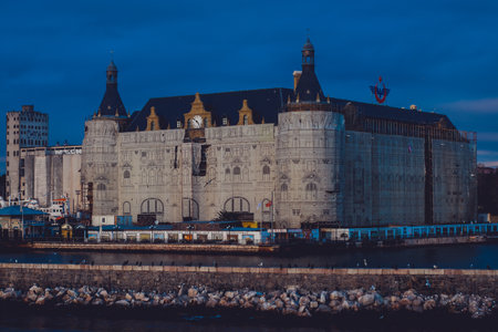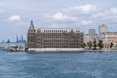 ISTANBUL, TURKEY - DECEMBER 7, 2019: Haydarpasa Railway Terminal restoration construction. Istanbul Turkey.