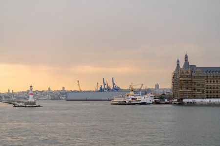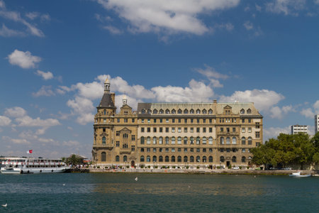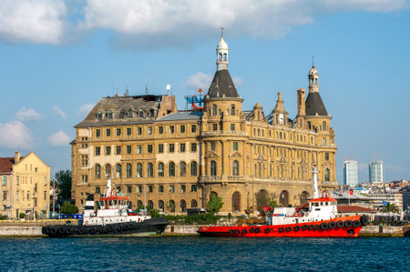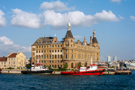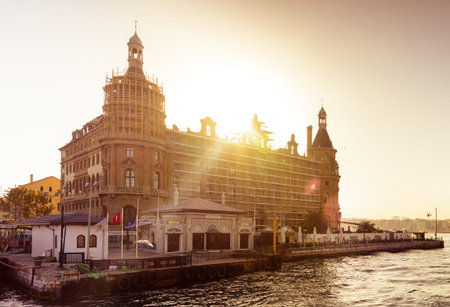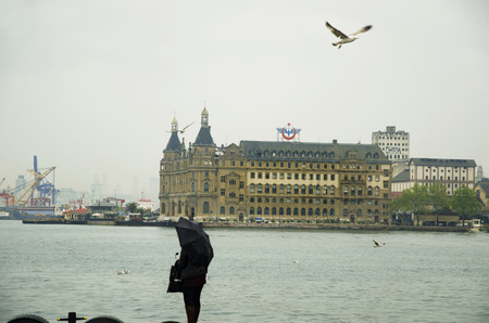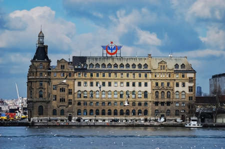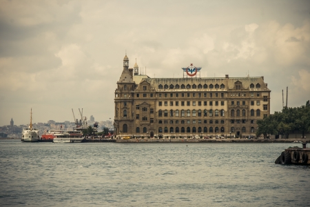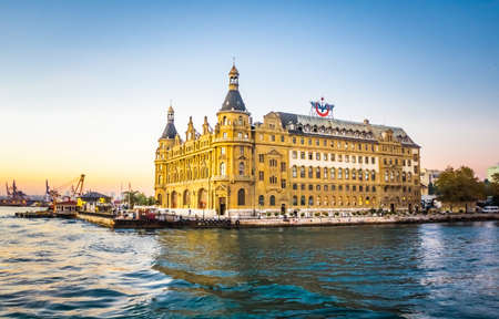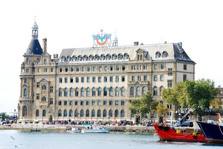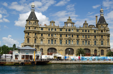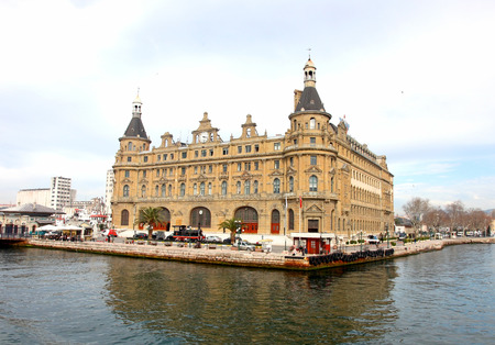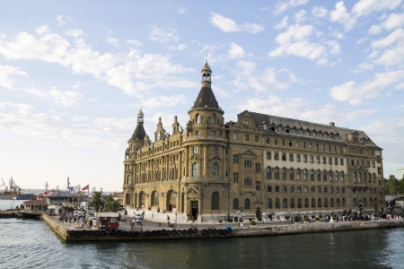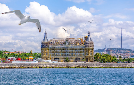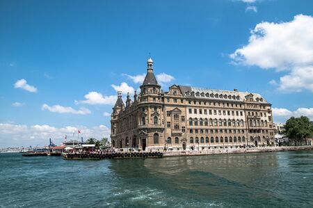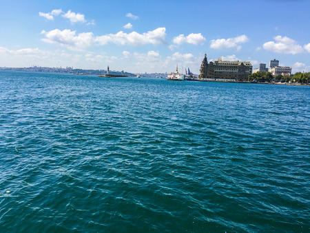 Istanbul, Turkey - July 7, 2015: Sea landscape with old famous railway station in Asia side of Bosporus