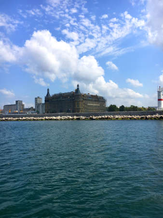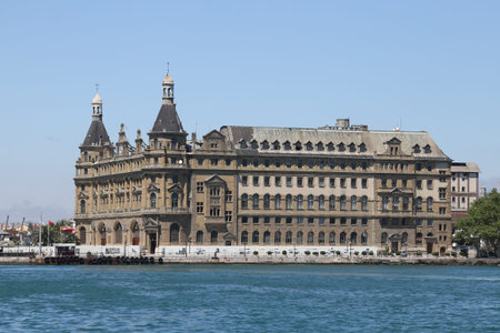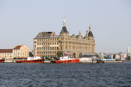 ISTANBUL, TURKEY - JUNE 8, 2016: The historic passenger terminal at Haydarpasa port near Kadikoy on the Asian side of the Bosphorus, Istanbul. Viewed from a ferry on a sunny summer afternoon, Turkey.