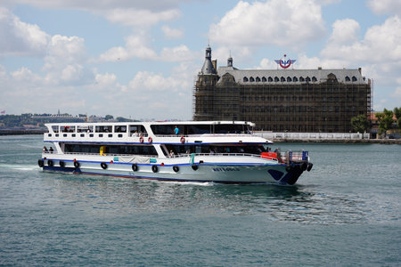 ISTANBUL, TURKIYE - JULY 27, 2024: Ferry in Bosphorus Straits