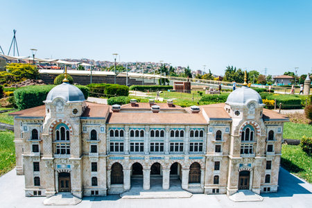 Istanbul, Turkey-July 12, 2017: reduced replica of the big post office. Miniaturk Park is located in Istanbul