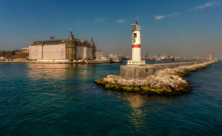 Lighthouse on the pier off the coast of Istanbul on the Bosphorus