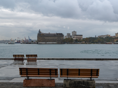 View from ferry boat in stormy day in Istanbul, Turkey