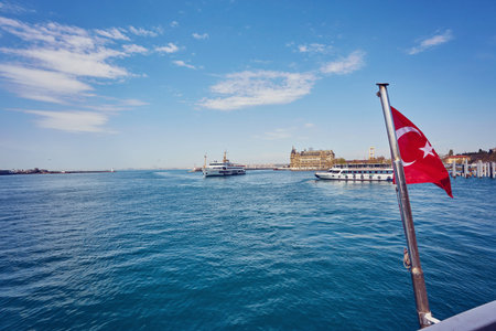 Istanbul, Turkey - January 19, 2013: Ferries in ?stanbul.boats has traversed the waters of the Bosphorus for millennia and until the opening of the first Bosphorus bridge in 1973 were the only mode of transport between the European and Asian halves of Ist