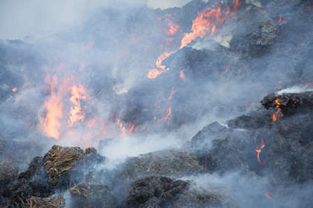A spring fire. Burning grass. Field Smoke Background