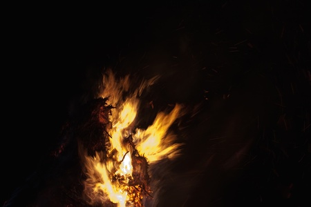 Flames of a campfire in the night