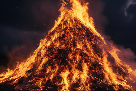 flames and fire released by a pyre for the traditional epiphany festival in Italy