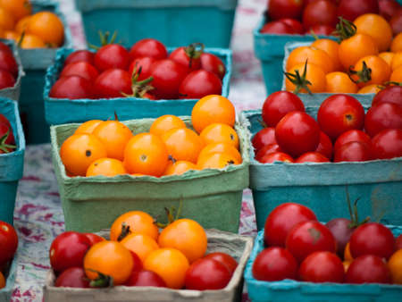 Fresh tomatoes in a market stall in Poland.