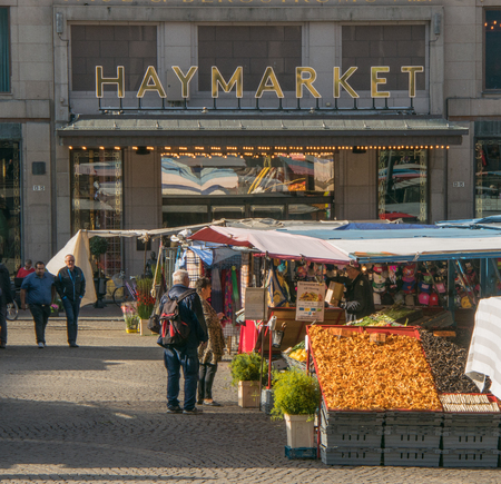Boston, Massachusetts - October 3rd, 2019: People shopping for fresh produce at Boston's open air Haymarket in downtown Boston.
