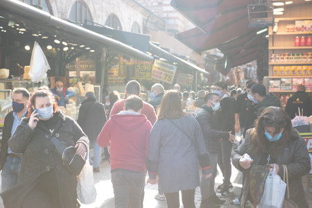Limassol Cyprus March 14, 2020 View of an unidentified people shopping at the market of Limassol in the morning