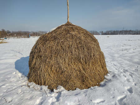 haystack in the winter in Maramures, Romania