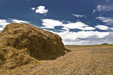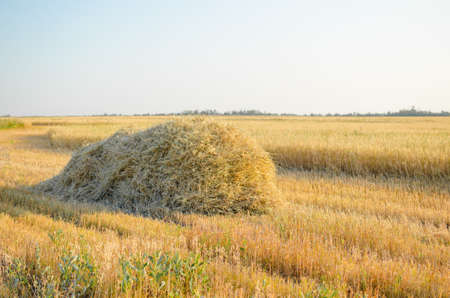 dense stacks of straw after harvesting wheat or other cereal, a stack of straw was torn and the straw was scattered