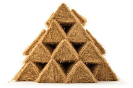 Bundled hay arranged in pyramid pattern on white background symbolizing country design agriculture a