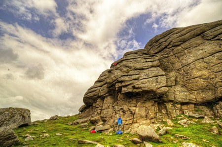 Haytor Rock formation in Dartmoor England with cloudy sky