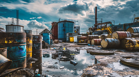 close-up of toxic waste spill, with hazardous chemicals seeping into the environment, created with generative ai