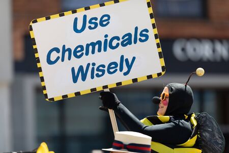 Warning symbol for chemical hazard on chemical container, chemical in factory
