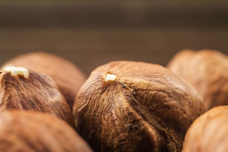 Hazelnuts on wooden backdrop. heap or stack of hazelnuts. healty food