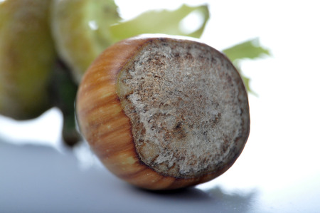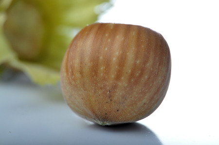 Whole hazelnut on a white background showcasing its unique texture and shape