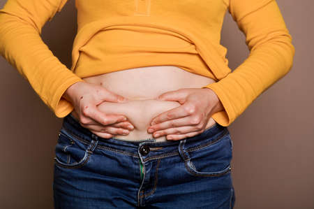 Belly Fat And Weight Lose. Overweight Woman Stomach