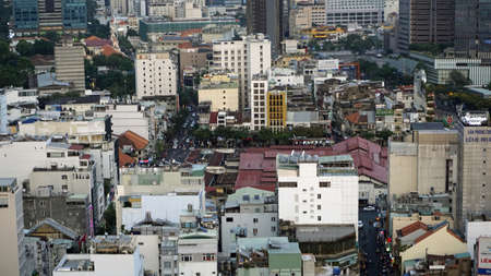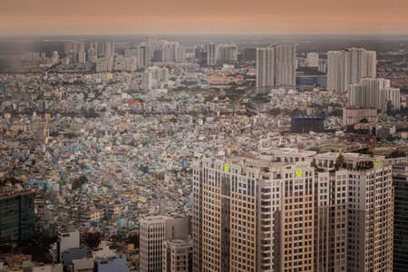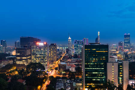 Ho Chi Minh City Vietnam, circa February 2020: colorful Skyline at dusk