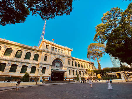 Saigon, Vietnam - Jan 26, 2021. Grand Post Office of Saigon, Vietnam. Saigon used to be the capital of the Republic of Vietnam, the largest economic center in Indochina.