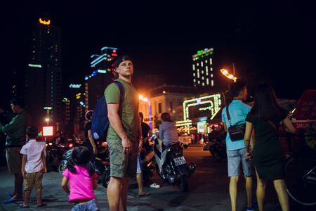 NHA TRANG,VIETNAM - FEBRUARY 19,2018: beautiful man on a background of night illumination in asia